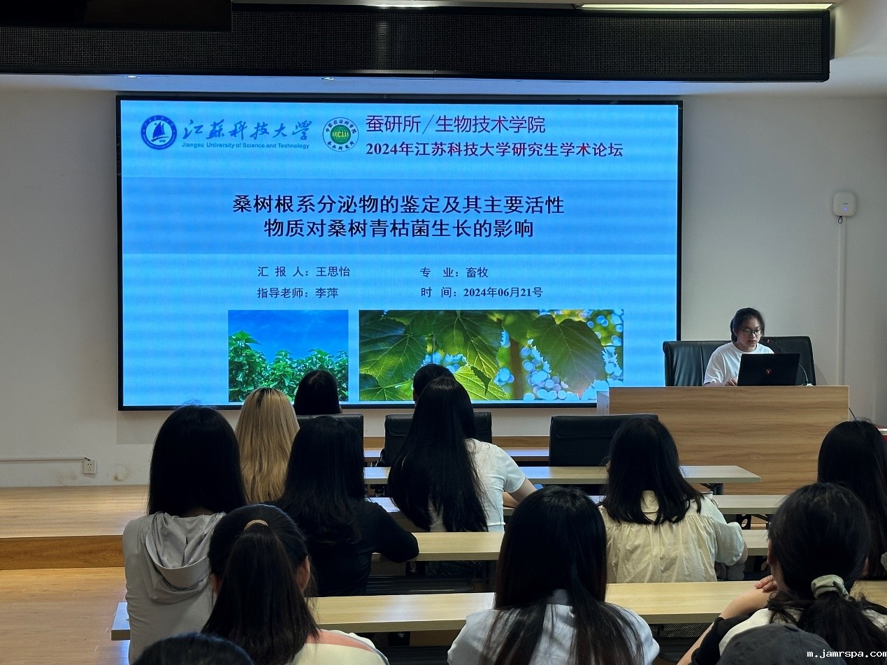 王思怡同学以《桑树根系分泌物的鉴定及其主要活性物质对桑树青枯菌生长的影响》为题进行了精彩的演讲,展示了她对于植物病原菌的研究成果和其对植物生长的影响。