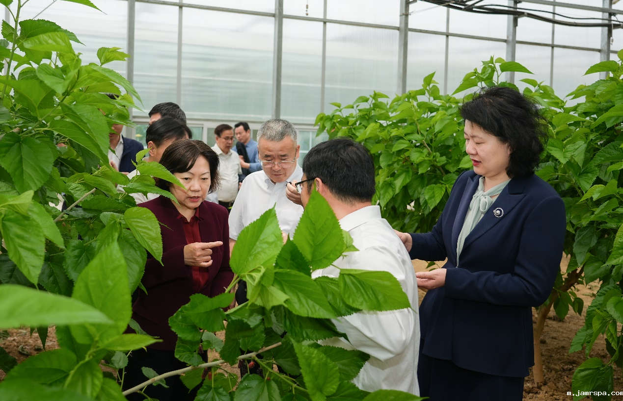 调研组一行在中国蚕学会科普教育基地实地了解了蚕桑科普教育与服务、蚕桑种质创新与品种选育、蚕桑资源开发利用与科研成果转化等情况。