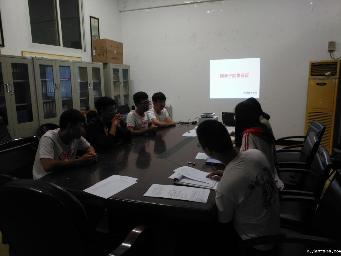 2019年9月25日,生物技术学院陶学子院推选拔在生物技术楼二楼会议室举行。本次院推由邹金城老师带领四位生技院的陶学子担任评委,陶学子沈依担任面试主持。