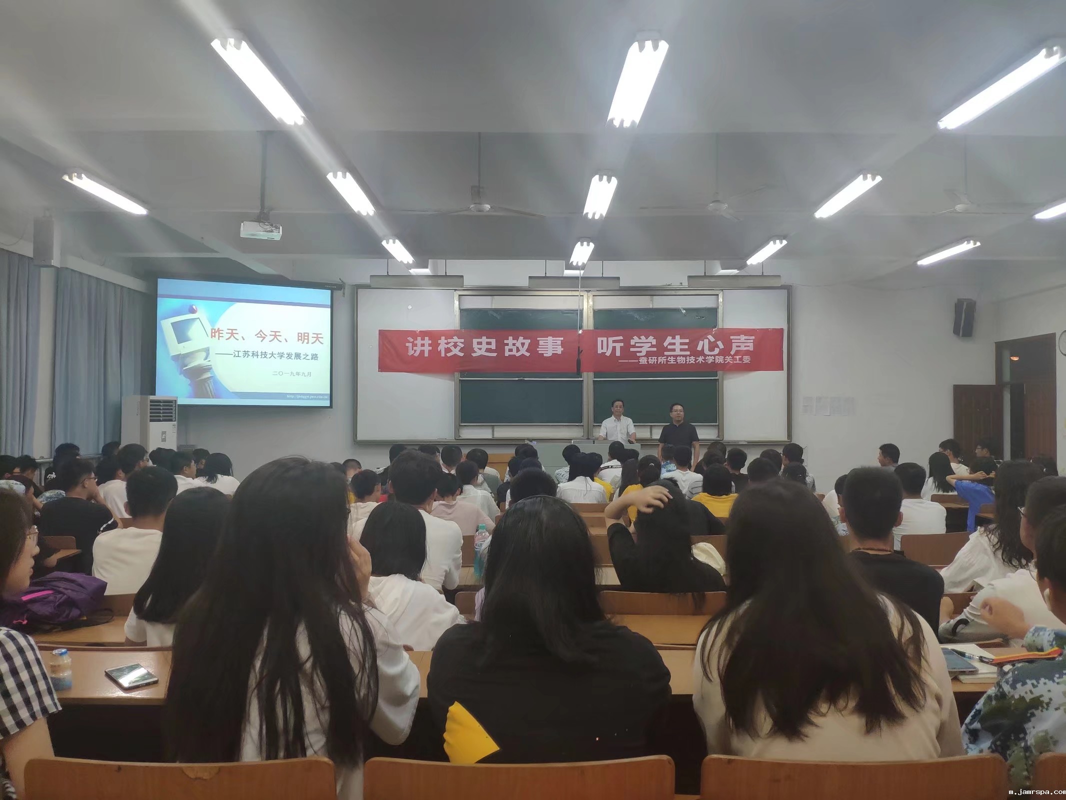 9月18日晚7:00,生物技术学院在综合楼召开“讲校史故事,听学生心声”的主题讲座。本次讲座由蚕研究所生物技术学院关工委举办,沈怡森书记担任主讲人,生物技术学院党委副书记王俊老师,团委书记钱平老师,辅导员王荃老师出席。全体大一新生参与本次讲座。