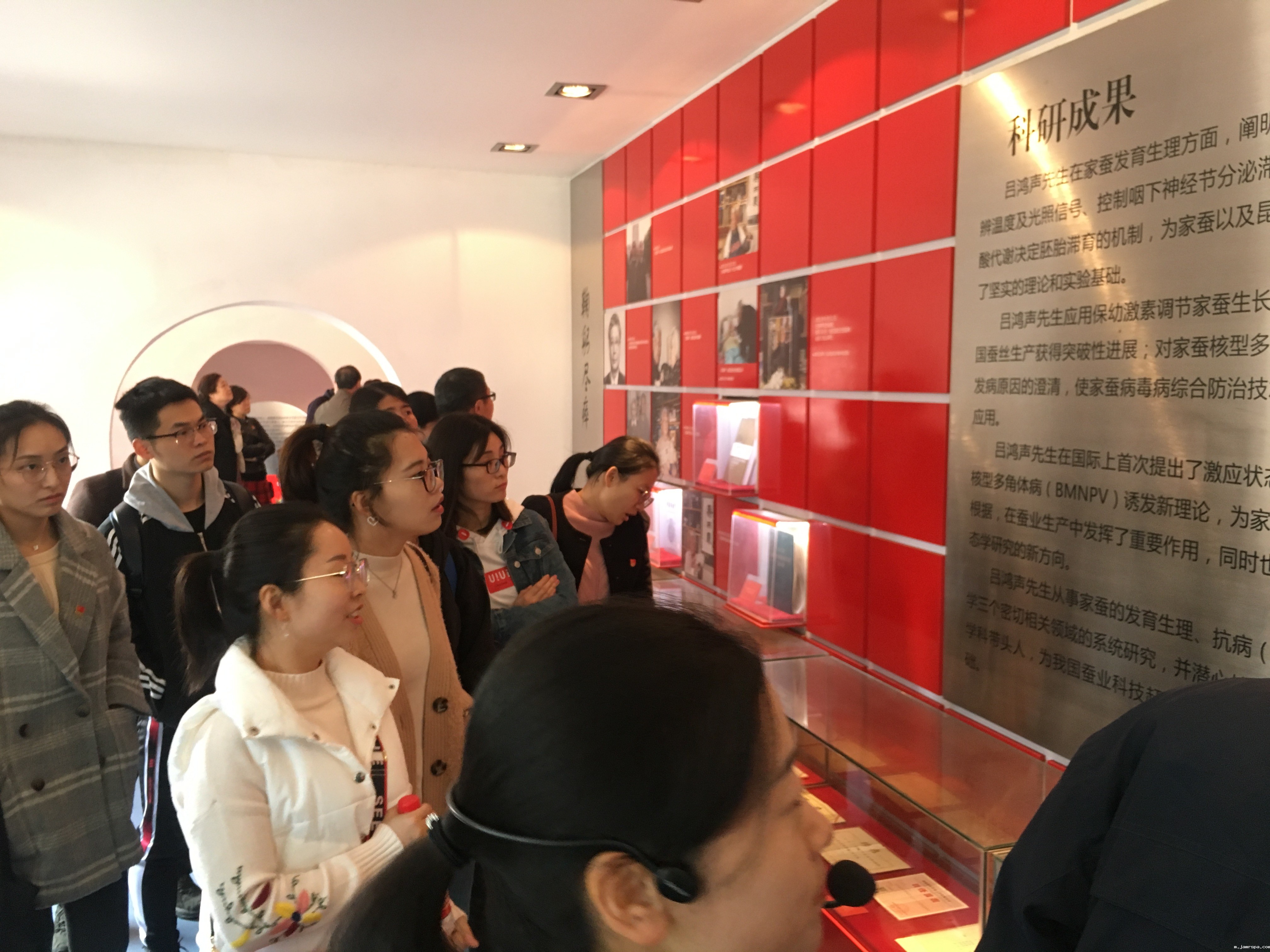 为了扎实推进生物技术学院“不忘初心、牢记使命”主题教育,激励青年教师进一步发扬“春蚕”精神,投身党的教育事业和勇担人才培养的重任,11月10日,蚕研所生物技术学院党委、关工委组织所院青年教师和本科生党支部党员赴溧阳吕鸿声纪念馆开展“不忘初心、牢记使命”主题教育。校关工委常务副主任沈贻森、蚕研所生技学院党委书记张国政、校团委副书记姜彦彦、所院关工委副主任叶夏裕、所院党委副书记王俊及青年教师、学生党员一行30余人参加了主题教育活动。
