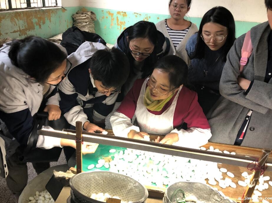 行程第一站,同学们来到了鑫缘企业的雅周桑种质选育资源圃,在这里参观了小蚕共育室,大蚕饲育室,蚕蛾冷库等地,张国政研究员亲自给同学们讲解了蚕病防治,桑树滴灌系统以及现代蚕业发展,同学们受益匪浅,对养蚕育种的整个流程及蚕业未来发展趋势有了更深的认识。紧接着,鑫缘集团的教授级高级工程师陈忠立带领同学们参观了国家桑蚕茧丝产业工程技术研究中心、鑫缘产品创新研发中心、鑫缘品牌实体店等地并详细地介绍了公司的成就、宗旨以及产业流程,并告诉同学们将来的对口职业大多为技术研发或人才管理,同学们对蚕学就业趋势有了更深地认识。同学们还参观了车间的制丝流程,选茧、煮茧、缫丝、复摇、并丝,一系列流程有条不紊,令人惊叹。随后同学们参加了鑫缘家纺产品的展示活动,鑫缘的优良做工使得蚕丝制品舒适度大幅提升,同学们深刻体会到蚕丝的非凡之处。鑫缘集团丝绸博物馆内的丝绸画更是栩栩如生、出神入化,不失为传统文化与现代工艺的完美结合。