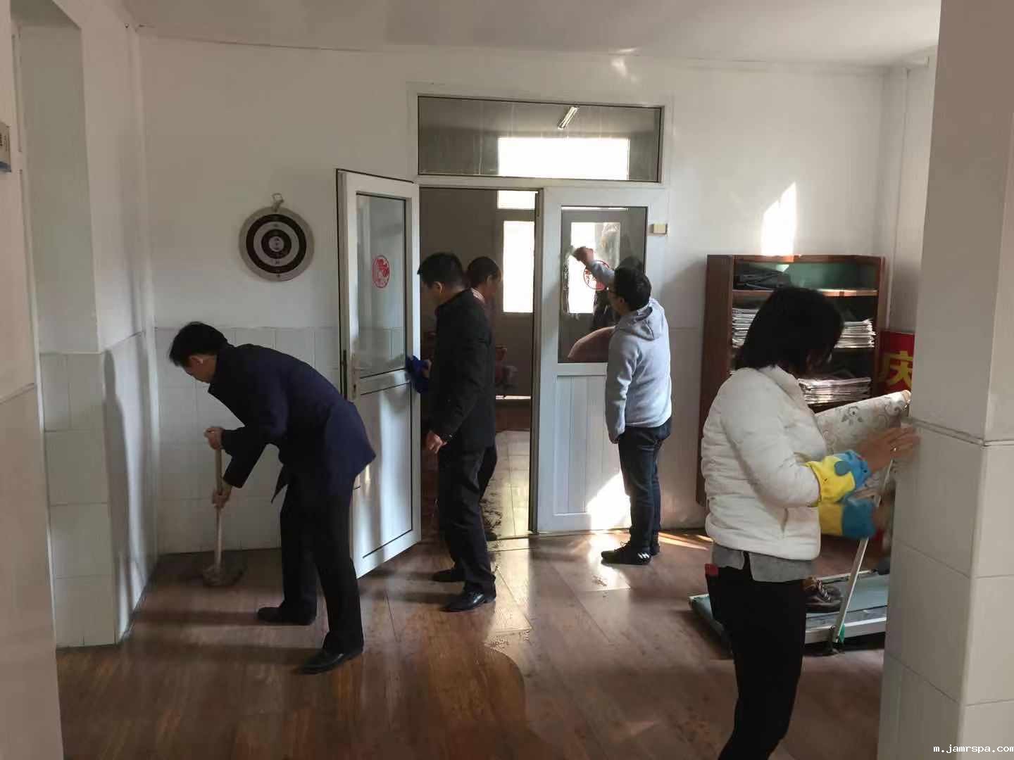 最美不过夕阳红,老年人的生活也要多姿多彩,也更需要相互交流、相互问寒问暖。西校区老年活动中心是西校区近200位老年人活动、交流、散心比较集中的地方,党员志愿者们来到老年活动中心将室内所有的桌子、椅子、门窗和地面进行一次全面彻底的清扫,经过一个小时的仔细打扫,室内窗明净几。活动时遇到离休干部张日铿同志已过来准备活动,他今年91岁,几乎每天到活动中心来。看到我们在打扫卫生,赞赏有加,与他聊聊过去工作的日子,心情舒畅。让他们有一个舒适、干净的活动场所,快乐健康的生活,他们心情高兴就是我们党员志愿者开展这次活动的目的和意义,也体现和继续发扬我们蚕研所党员一贯尊重老人的优良传统。