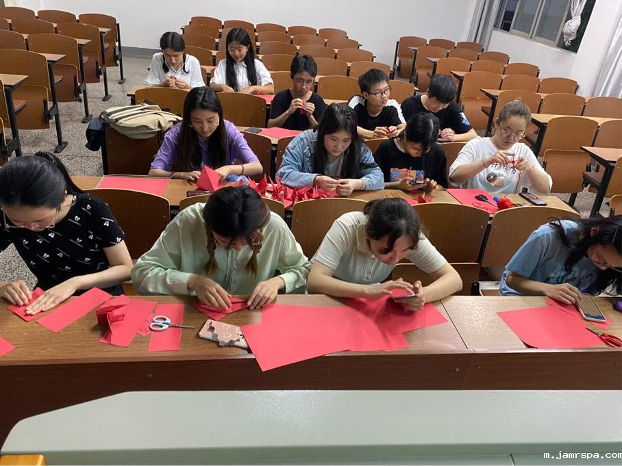 小队全体成员于拜访老人前天聚集在教室里,用最真诚、最质朴的心为老人们用红纸做千纸鹤、用红绳做金刚结,从而表达他们对老人们的关怀和祝福。