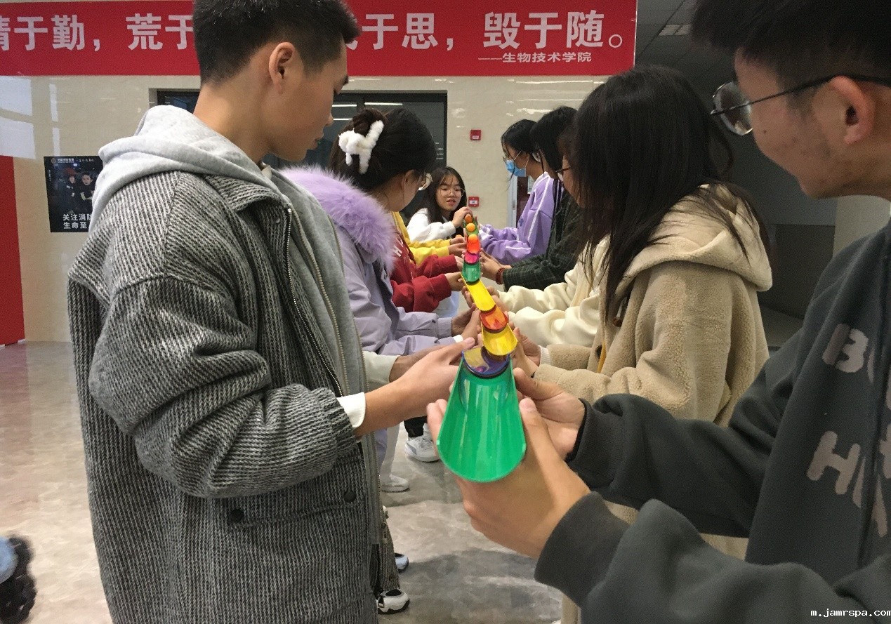 为了促进我院各学生组织干部之间的交流,增强学生组织凝聚力,营造生动活泼、积极向上的团队氛围,使学生组织干部更快、更好地融入生物技术学院这一大家庭。11月21日,生物技术学院在生技楼一楼大厅举办了学生组织素质拓展活动,让同学们在周末的时间里走出宿舍,体会团队合作的重要性。