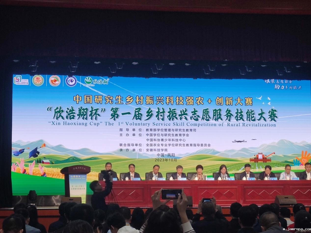 10月27日至30日,由教育部学位管理与研究生教育司指导、中国学位与研究生教育学会和中国科协青少年科技中心主办、安徽科技学院承办的中国研究生乡村振兴科技强农+创新大赛“欣浩翔杯”第一届乡村振兴志愿服务技能大赛决赛在安徽科技学院凤阳校区举行,来自中国农业科学院、中国农业大学、江苏科技大学等45所高校或研究生培养单位的113支团队齐聚古城凤阳,竞相展示青年研究生投身乡村振兴火热实践的风采。中国学位与研究生教育学会副会长张淑林教授,全国农业专业学位研究生教育指导委员会秘书长、中国农业大学研究生院常务副院长郭鑫教授出席了大赛开幕式,我校李木旺副校长应邀出席比赛开幕式。