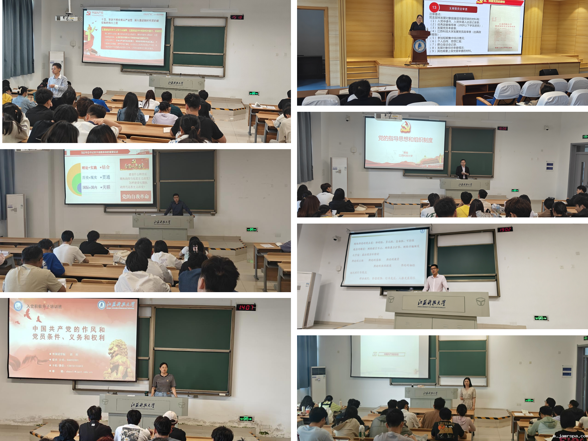 4月25日,仇莺璇老师带领学员学习了学生党员发展工作实施办法,详细讲解了入党积极分子培养要求、发展党员程序及规范书写发展党员材料;5月7日,刘清生老师以《聚精神力量,滋养青年成长》为主题,对党的二十大报告进行了解读,系统讲解了学习贯彻党的二十大精神的重要性和意义;5月8日,蒋俊老师从党的指导思想的形成和发展历程为学员讲解了中国共产党的指导思想和组织制度;5月14日,刘占超老师带来《严守党的纪律规矩,做新时代合格党员》主题授课,他结合优秀共产党员的典型事迹,阐述了新时代青年的责任使命;5月15日,毛晖老师围绕汇聚向上向善力量,共建共享网络文明,讲解了如何做好新时代党的宣传工作;5月17日,赵莉老师讲解了中国共产党党员的条件、义务和权利,帮忙学员更好理解如何成为一名合格党员;5月24日,李秀明老师为学员讲解了中国共产党的性质、宗旨和纲领,帮助学员端正入党动机,增强党性修养,坚定理想信念。