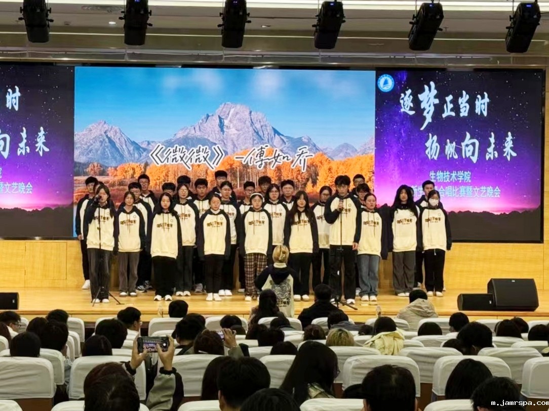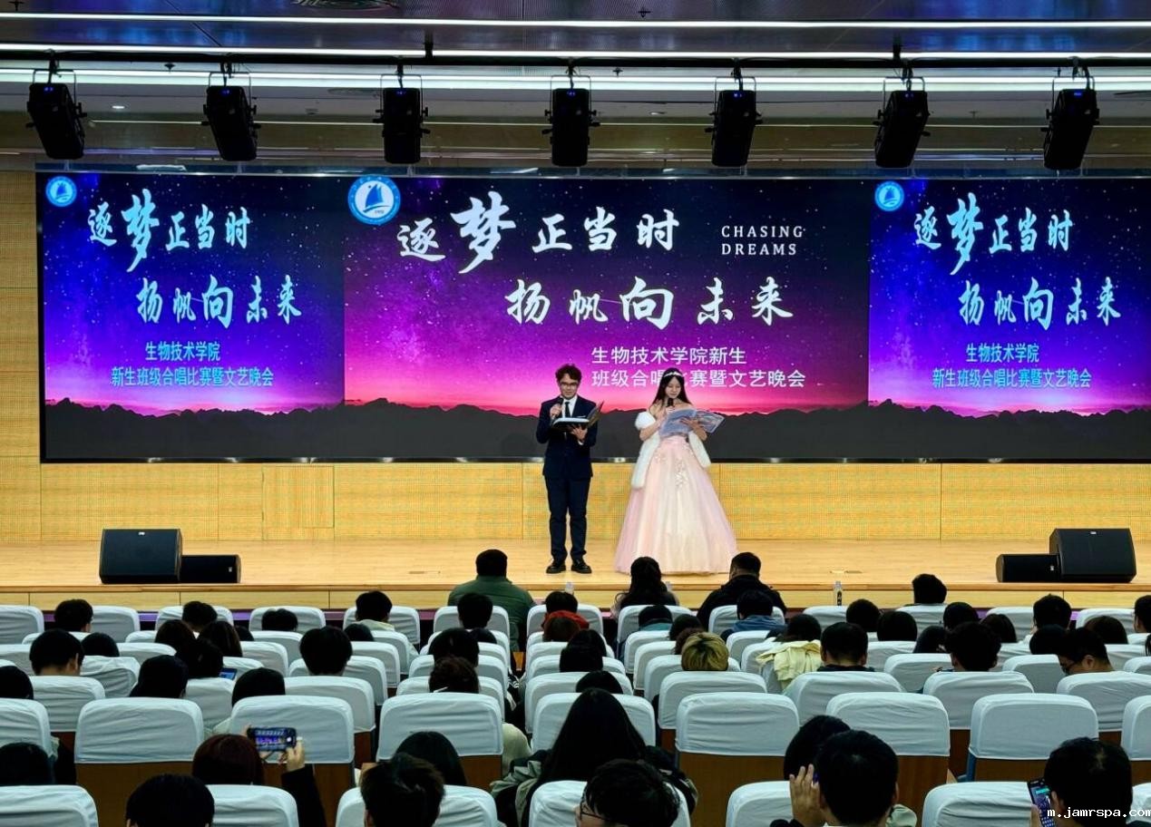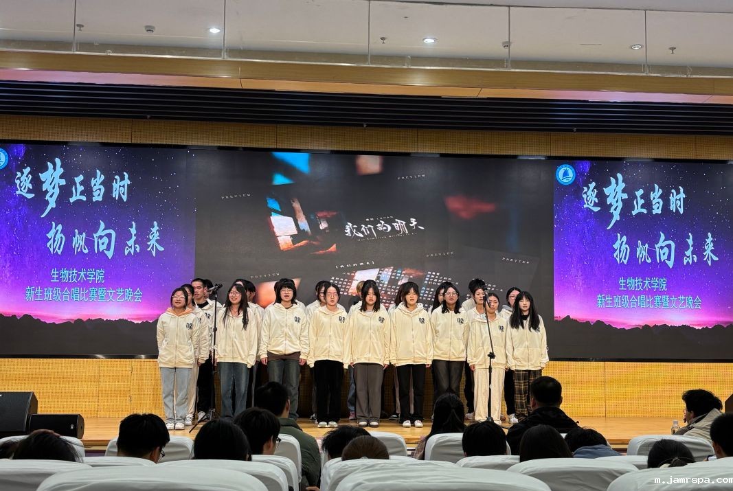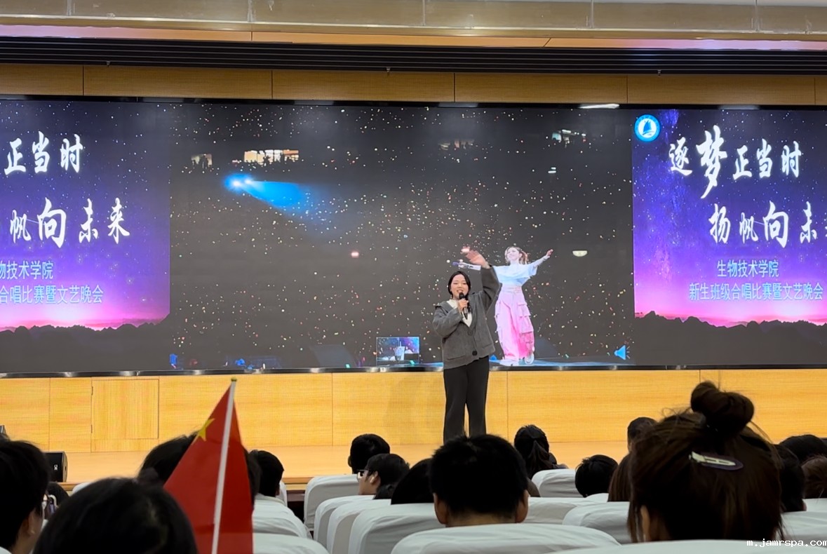 为活跃校园文化氛围,增强班级凝聚力,11月25日晚,生物技术学院在图书馆B105举办“逐梦正当时 扬帆向未来”新生班级合唱比赛暨迎新晚会。校公共艺术教育中心张淼老师、理学院团委书记杨旺林老师、生物技术学院戴雪松老师应邀出席并担任评委,迎新晚会由新生张晓昊与凯地尔丁同学主持,生物技术学院24级全体新生参加,晚会现场气氛热烈,氛围浓厚。