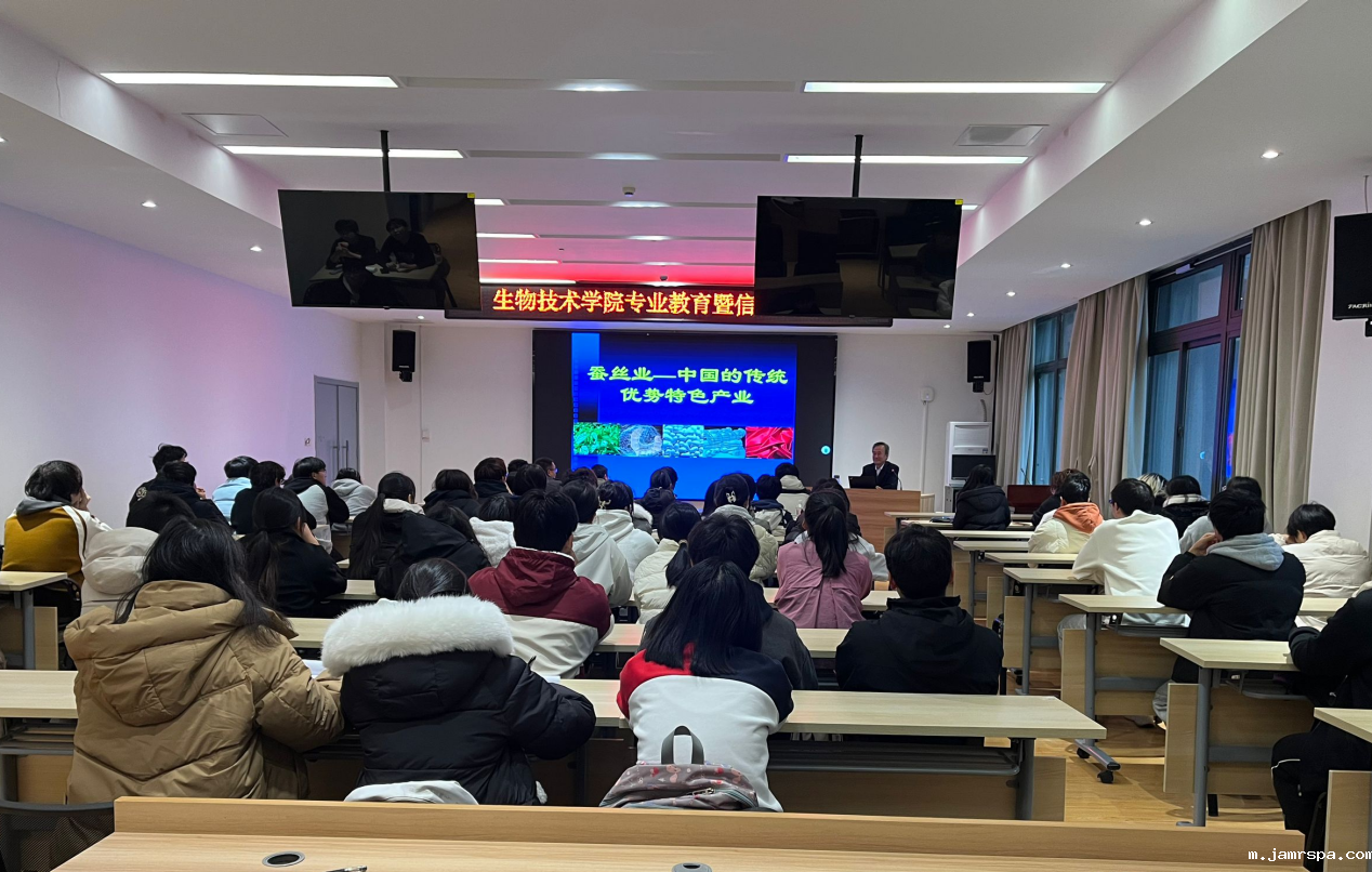 为进一步增强蚕学专业本科生对专业知识的了解,坚定专业自信和专业认同感,12月4日,蚕学系联合生物技术学院团委、工会、关工委共同举办了一场蚕学专业教育讲座暨信仰公开课。本次讲座邀请了原江苏科技大学副校长、党委副书记、纪委书记郭锡杰研究员为同学们授课。活动由蚕学系主任赵国栋主持,2023和2024级蚕学本科生及部分学院教师参加了活动。