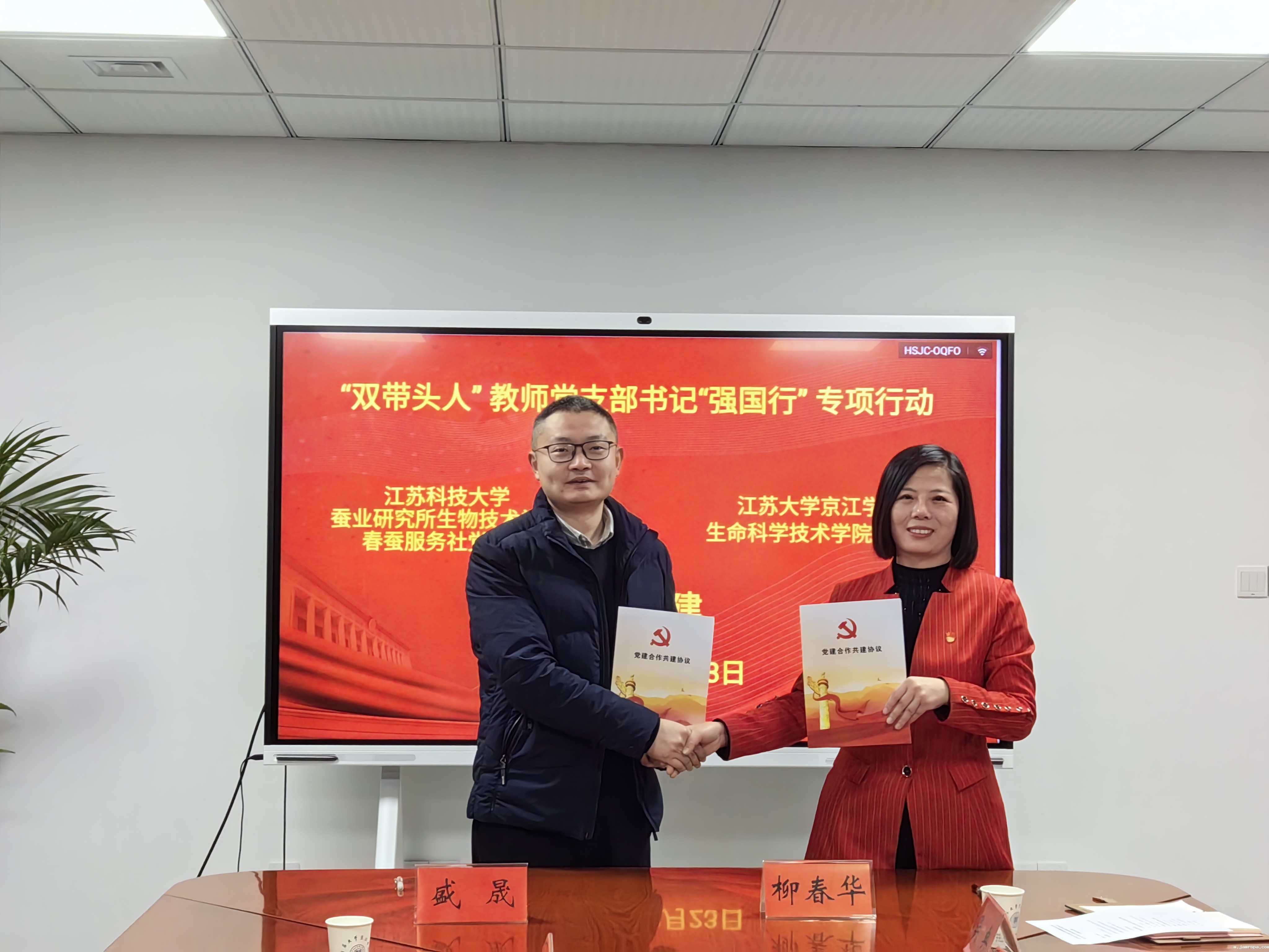 为贯彻落实立德树人根本任务,强化高校“双带头人”队伍建设和作用发挥,辐射带动民办高校等校内外党组织全面进步,2024年12月23日,蚕业研究所生物技术学院春蚕服务社党支部开展了“强国行”专项行动,与江苏大学京江学院生命科学技术学院党总支开展党建共建。所院党委书记钱平,副所(院)长、春蚕服务社党支部书记盛晟、支部副书记李豪和组织员郭微微参加了共建活动。江苏大学京江学院生命科学技术学院党总支书记柳春华及相关教师代表参加了交流活动。