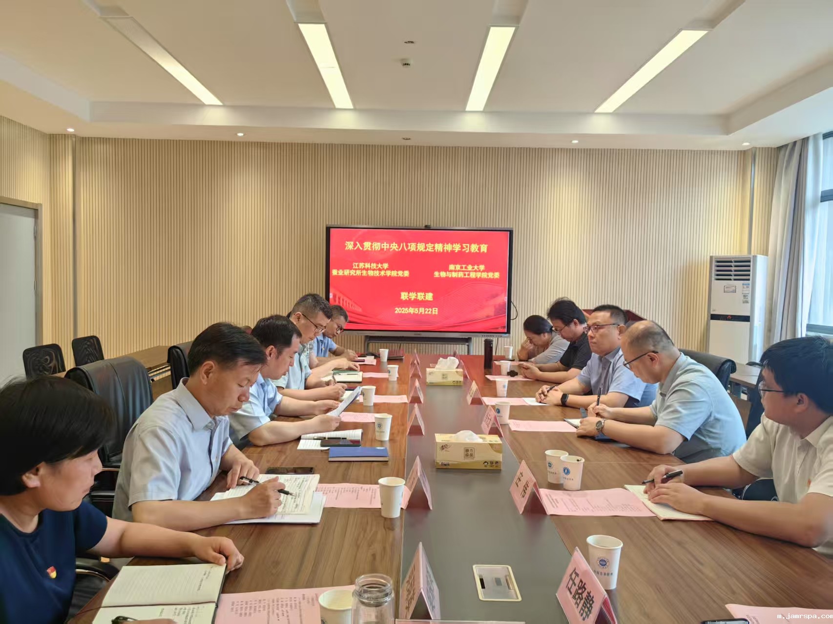 为深入学习贯彻习近平总书记关于党的作风建设的重要论述,推动中央八项规定精神落地生根,2025年5月22日,南京工业大学生物与制药工程学院党委一行来我院开展联学共建活动,所院领导班子全体成员参加联学共建活动。